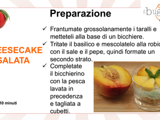 I carboidrati dei taralli, le proteine del formaggio, le vitamine e i sali minerali della pesca e l’accostamento intrigante al basilico – con la sua azione antinfiammatoria – fanno di questa CHEESECAKE SALATA un antipasto light davvero completo, perfetto per un’abbronzatura assicurata!