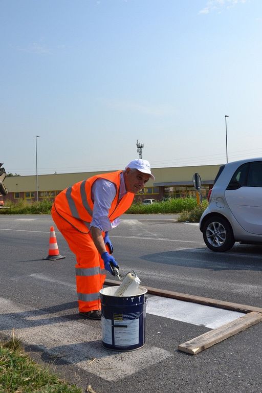 Questa mattina il sindaco di Rivalta Nicola de Ruggiero ha voluto personalmente ridipingere le strisce pedonali della rotonda che divide Orbassano dal quartiere di Tetti Francesi sulla Provinciale 143.