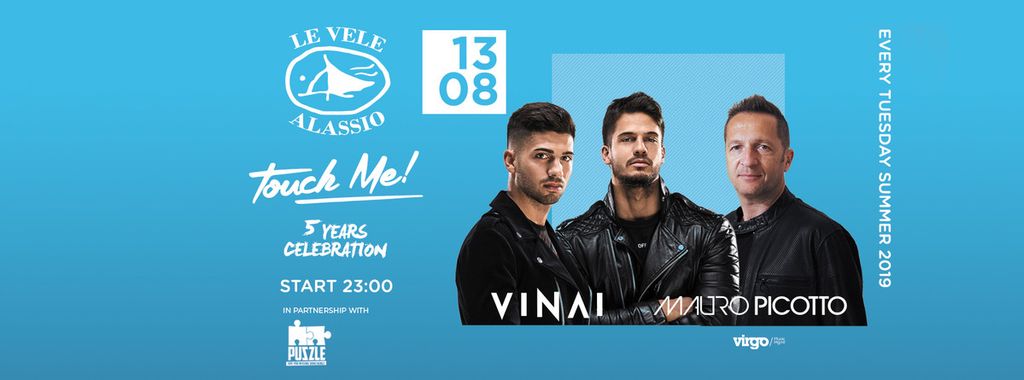 Le Vele Alassio presents Touch Me! - Special Guest DJs: Vinai + Mauro Picotto + Puzzle Crew / Resident DJ: Francis Key / Resident Voice: Mad Fityone