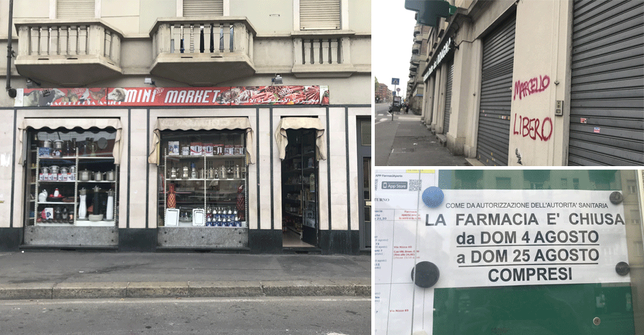 Corso Giulio Cesare è la fotografia di uno spaccato di una Torino che cambia: viste le poche persone in vacanza, tanti negozi sono rimasti aperti anche nel periodo più “scarico” dell’anno. Le parecchie serrande abbassate non illudano. In Aurora e Barriera di Milano vi è un costante ricambio di gestione dei locali e non è affatto strano che un esercizio commerciale rimanga chiuso mesi, per poi cambiare proprietà e/o destinazione.