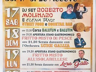 Alle 15,30 Spettacolare competizione con l’originale e coinvolgente Corsa dei Balutun e dei Balutin, in un’area all’ingresso di Isolabella, arrivando da Poirino; dalle 19,30 apertura stand enogastronomico con antipasti piemontesi (con i pregiati salumi Rosa), agnolotti, dolci, ma la regina sarà la Gran Grigliata di pesce. Dalle 21,30 serata danzante con orchestra Luigi Gallia