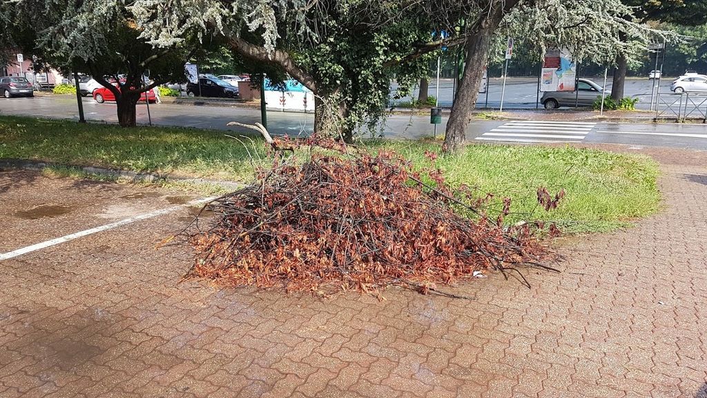 Molte aree verdi ancora abbandonate all’incuria. In Piazza Italia un accumulo di rami si trova lì da mesi