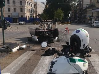 Ladro d'auto si ribalta e scappa a piedi, ma viene bloccato dai vigili urbani