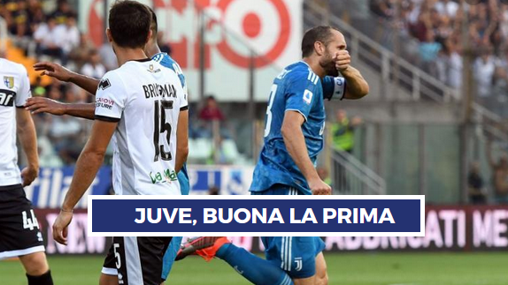Subito Juve al "Tardini" di Parma all'esordio in campionato 2019/2020. La risolve Giorgio Chiellini, che non segnava in serie A dal dicembre 2018: tap-in con il fiuto del gol dei migliori bomber bianconeri e palla in rete sugli sviluppi di un corner a metà primo tempo. E' una Juve che piace, quella di Sarri, e che non si fa mai sorprendere in fase difensiva. Ci sono tre punti, molto ordine e praticità, con qualche affanno soltanto nei minuti finali quando il Parma ha spinto con quattro punte alla ricerca dell'1-1. Lascia, tra l'altro, molti dubbi il Var che toglie lo 0-2 a Cristiano Ronaldo.