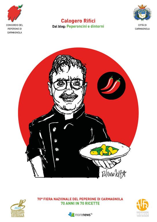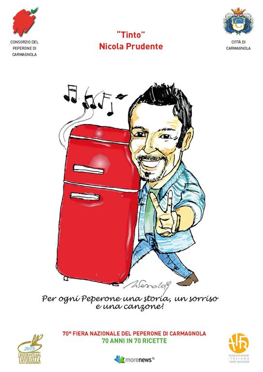 Il fumettista originario di Busto Arsizio per l’occasione ha realizzato il logo ed alcune vignette sul tema del contest dedicato ai 70 anni della manifestazione. In particolare ha realizzato le caricature di Renata Cantamessa “Fata Zucchina” e Tinto, Nicola Prudente, che saranno gli animatori del villaggio del Peperone, inoltre i ritratti dei cinque finalisti ed alcune vignette con cuochi famosi alle prese con il Peperone.