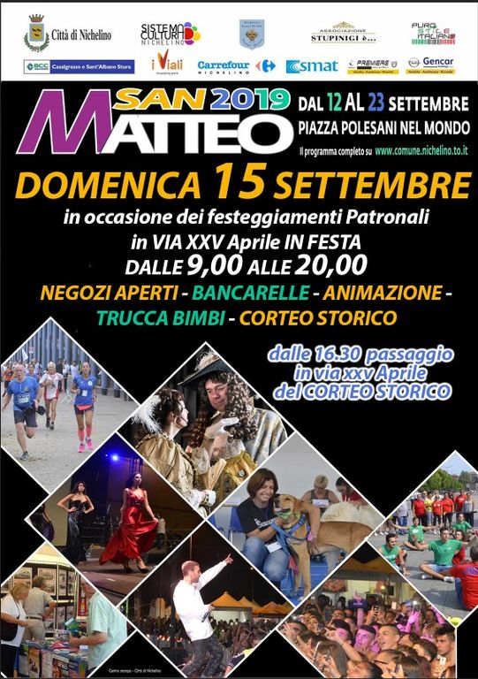 Il conto alla rovescia sta procedendo. Si avvicina sempre di più il 12 settembre, quando prenderà il via l'edizione 2019 della Festa di San Matteo, che fino al 23 animerà e colorerà Nichelino nella ricorrenza del suo santo patrono.