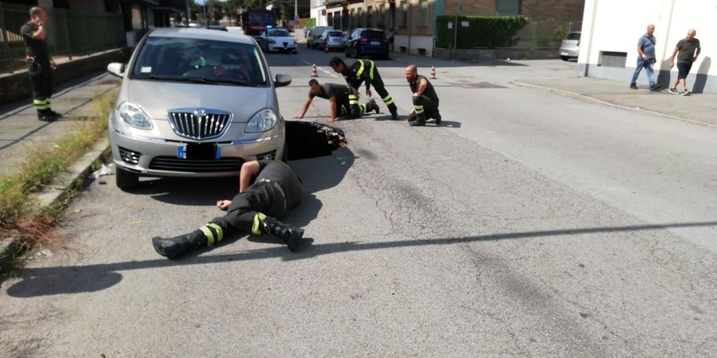 Si apre una voragine in via Somalia, auto salvata per miracolo