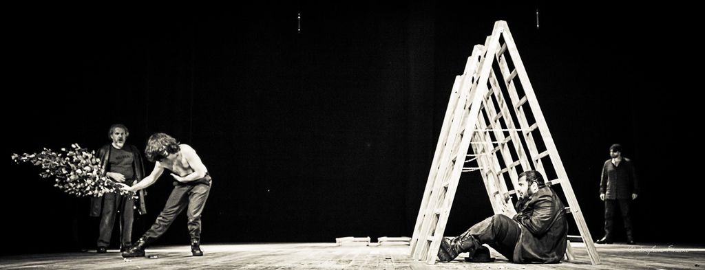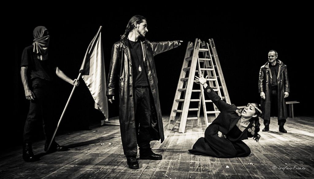“L’allestimento è trasportabile, per questo si può adattare a qualsiasi ambiente – precisa Corbetta –, e il Borgo fin da subito ci è sembrato perfetto. Vogliamo far lavorare la fantasia del pubblico: quelle scale, unico oggetto in scena, dovranno trasformarsi sotto i loro occhi a seconda delle suggestioni che daremo. Tutto sta nella forza e nella ferocia trasmessa. Mi sono ispirato a una frase del Macbeth: la vita, come una favola raccontata da un idiota, ‘è piena di furore e di rumore’, e non significa nulla. Ecco, noi portiamo in scena la follia ancestrale che dimora negli esseri umani”.
