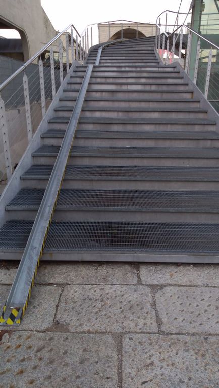 Da oggi i ciclisti che attraversano la ferrovia del Lingotto non dovranno più portarsi la bici in spalla. E' stata installata, sulle scale della passerella olimpica, una corsia-scivolo dedicata alle biciclette, che permette di accompagnare senza fatica il mezzo nella salita e nella discesa a piedi. Un intervento proposto dal Movimento 5 Stelle della Circoscrizione 8 già nel settembre 2017, tramite un ordine del giorno approvato in consiglio.