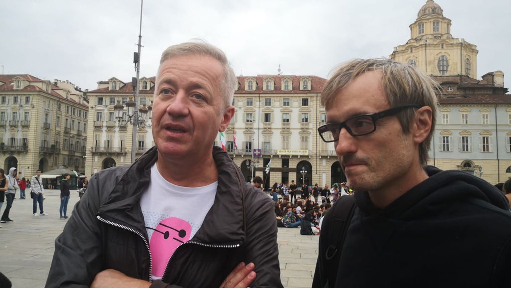 Oggi pomeriggio in piazza Castello si è svolta la cerimonia di inaugurazione della settimana verde. Ad aprire l'evento i ragazzi di Fridays For Future Torino, che hanno ribadito il messaggio: "Nessuno può permettersi di rimanere in silenzio: è il nostro momento". Assieme a loro anche Max Casacci e Ninja dei Subsonica. "Siamo qui - spiega Casacci - per dare supporto a questi ragazzi, ma anche per chiedere scusa a nome di un'intera generazione, la nostra, che ha alcuni esponenti che non hanno capito l'importanza di quello che sta accadendo in queste piazze. Ci sono persone che hanno preferito nascondersi in un cinismo confortevole forse perché incapaci di partecipare alla trasformazione che invece questi ragazzi stanno realizzando. Anche per questo, siamo qui per proteggere e sostenere chi manifesta”.