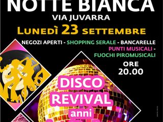 L'appuntamento finale è in via Juvarra con la "Notte Bianca": negozi aperti fino alla mezzanotte, punti musicali, animazione e bancarelle lungo la via. In più: disco revival anni '70 - '80 - '90 per allietare tutti, giovani e meno giovani. La serata viene organizzata in collaborazione con i commercianti di via Juvarra.