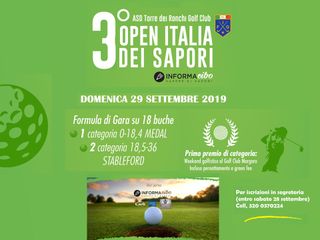 Per il 3° anno successivo è ormai ai blocchi di partenza il 3° Open ITALIA DEI SAPORI, che si svolgerà domenica 29 settembre presso il Torre dei Ronchi Golf Club in località Ronchi.
