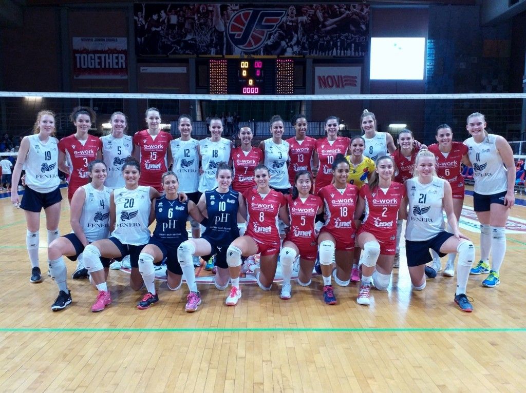 Per tre set coach Bregoli ha lasciato invariato il sestetto iniziale, formato dalla diagonale Bosio-Grobelna, dalla coppia centrale Akrari-Rolfzen, dalle schiacciatrici Perinelli e Guerra e dal libero De Bortoli; nel quarto set ha quindi dato spazio a Laak, Mazzaro e Meijers.