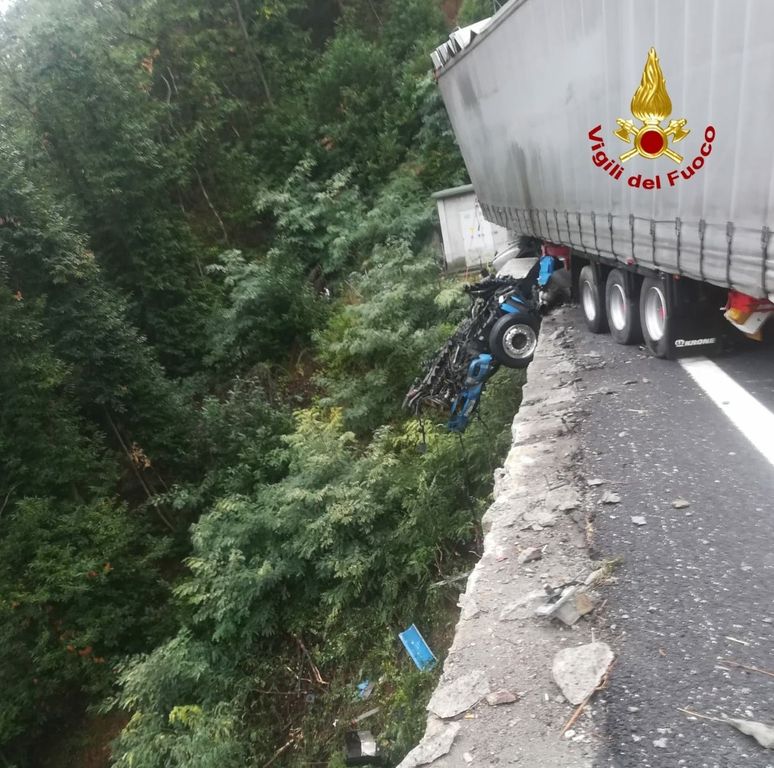Nell'urto, la cabina del mezzo pesante pare essere volata nella scarpata. Sul posto i vigili del fuoco e i militi dell'emergenza sanitaria. Conducente illeso
