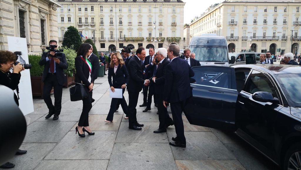 Ad accoglierlo il presidente della Corte dei Conti Angelo Buscema, la sindaca Chiara Appendino e il Presidente della Regione Alberto Cirio.