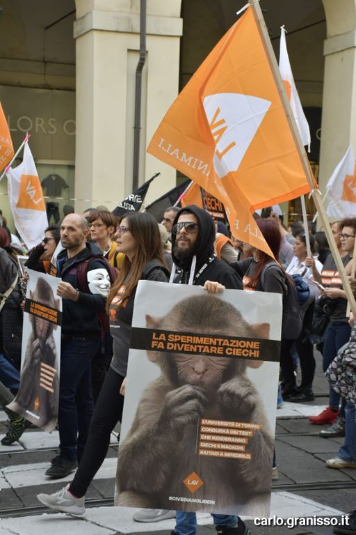 Tutti in piazza per protestare contro gli sperimenti dell'Università di Torino sui sei macachi rinchiusi nel laboratorio dell'ateneo di Parma e utilizzati per la ricerca. Oggi pomeriggio, dalle ore 15, i manifestanti si sono dati appuntamento a Porta Susa, dove è partito un corteo formato da cittadini, scienziati e sigle animaliste, uniti per chiedere di interrompere immediatamente l’esperimento sulle capacità visive degli animali.