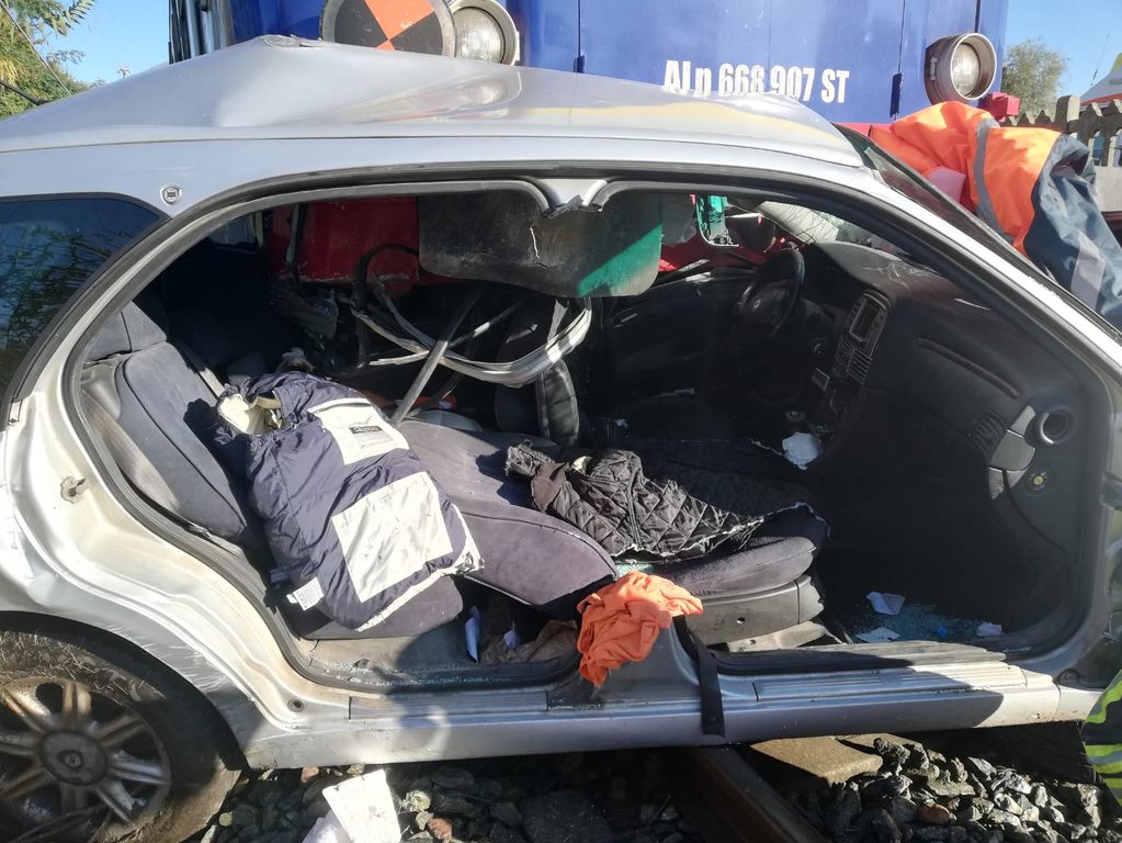 La vettura è stata trascinata per alcuni metri. Si indaga sulla dinamica che ha portato allo scontro. L'uomo al volante: "Sono stato abbagliato dal sole e non ho visto il convoglio"