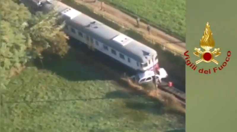 Valperga, il treno travolge un'automobile: sul posto il 118 e l'elicottero dei vigili del fuoco [FOTO e VIDEO]