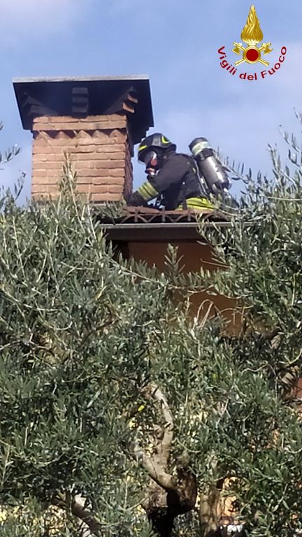 A fuoco il tetto di una casa di due piani a Verrua Savoia, intervento dei Vigili del Fuoco