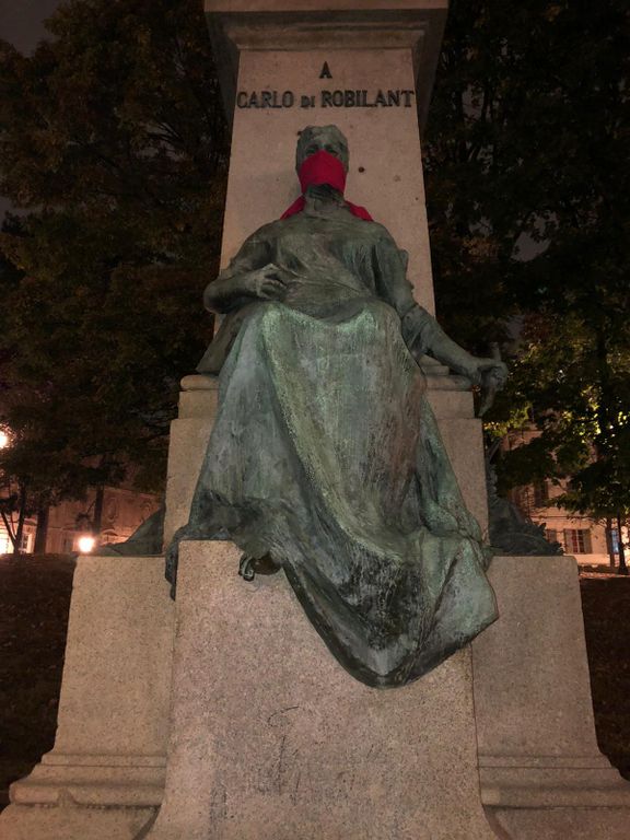 No alla censura, CasaPound imbavaglia le statue a Torino e in oltre cento città italiane