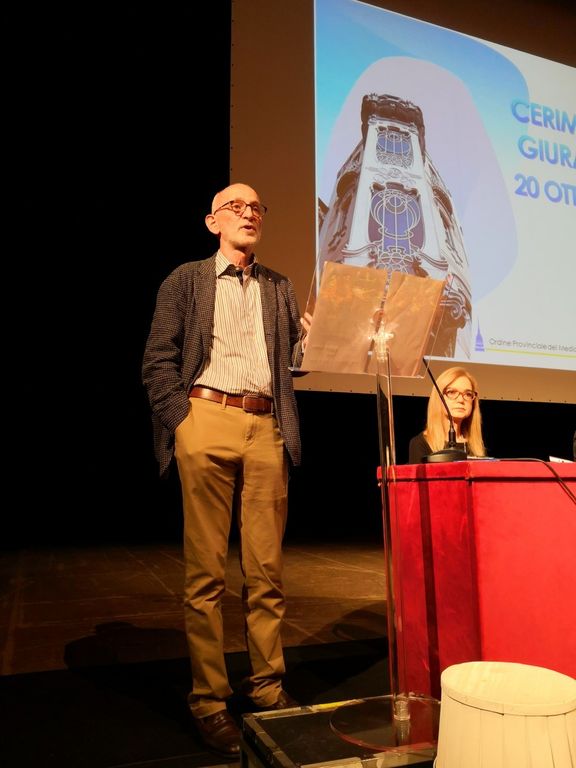Nel pomeriggio si è tenuto il Giuramento professionale dei 459 medici (il 60% donne) e dei 51 odontoiatri nuovi iscritti: in sala è stata letta una versione moderna e aggiornata del classico Giuramento di Ippocrate, un testo dal grande valore non solo simbolico, il cui rispetto è previsto dal Codice di deontologia medica. Proprio ai nuovi iscritti si è rivolto il presidente Giustetto invitando nel suo intervento i giovani medici a “mettere in campo una risorsa particolare, investire sul rapporto con i vostri pazienti. Ci vorrebbe, anche da parte del sistema formativo, un'attenzione particolare nell'insegnare la comunicazione ai medici”.