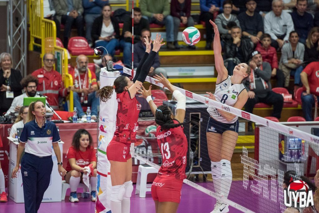 Nell’arco dei tre set la squadra di Lavarini si mostra superiore in tutti i fondamentali, mentre le ragazze di Bregoli sono nel complesso più fallose, troppo poco ciniche e concludenti negli attacchi, e poco efficaci al servizio.