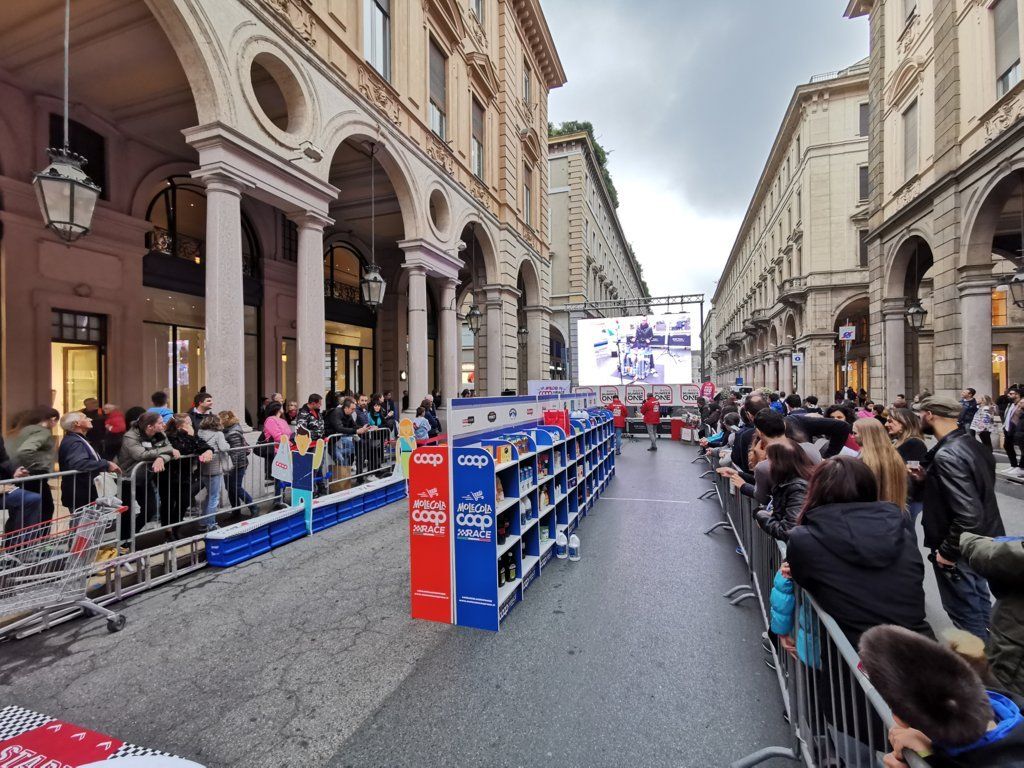 Quindici giornate di gara in tre regioni con oltre 1500 concorrenti e 70 mila euro di premi distribuiti. Questi i numeri della quarta edizione della Molecola Coop Race, la corsa di carrelli promossa da Nova Coop e organizzata dall’agenzia Zip. L’iniziativa è realizzata con la partecipazione di Coop Liguria e Coop Lombardia e in collaborazione con Molecola Italia, che produce la Cola italiana (da qui il nome della manifestazione) e con oltre venti aziende Top Sponsor che mettono a disposizione i prodotti che si trovano sugli scaffali di gara e gli omaggi dati ai concorrenti.