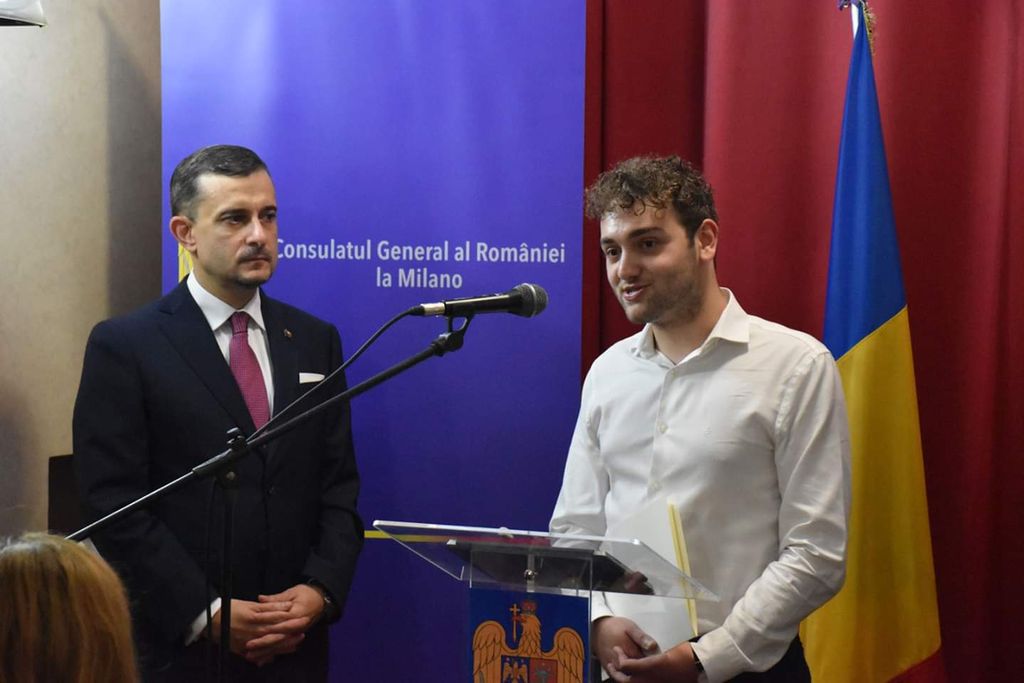 Norbert Kereszteny, lo studente di medicina romeno di Castellanza ha ricevuto un Diploma di Merito offerto dall’Ambasciatore della Romania George Bologan