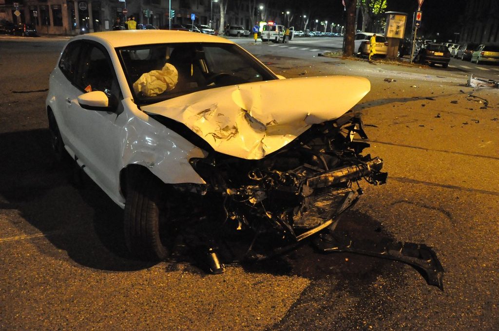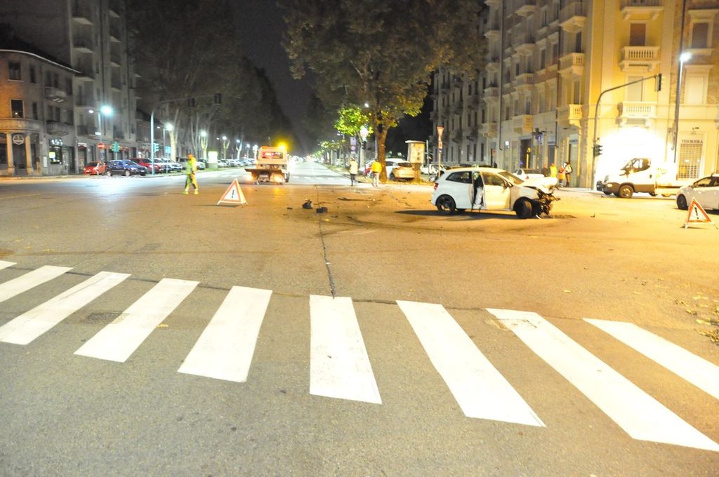 Due auto si sono scontrate questa notte intorno alle 2.45 in largo Francia angolo corso Monte Grappa. L'impatto, frontale, ha coinvolto una Volkswagen Golf e una Volkswagen Polo, che sono finite contro un palo semaforico.