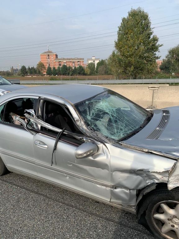 Brutto incidente nel primo pomeriggio di oggi, lunedì 28 ottobre, sulla tangenziale sud di Torino, all'altezza del km 13, dopo lo svincolo Debouche.