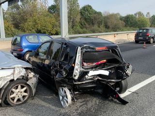 Brutto incidente nel primo pomeriggio di oggi, lunedì 28 ottobre, sulla tangenziale sud di Torino, all'altezza del km 13, dopo lo svincolo Debouche.