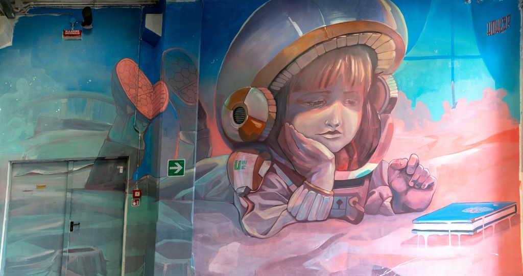 Dall'altro lato l'inaugurazione del murales 'Astro Fun' che da ieri anima l'ingresso della biblioteca del Peano. L'opera mostra una ragazzina che immagina di atterrare sulla luna dalla sua stanza attraverso la lettura di un libro. Un modo per festeggiare il cinquantenario dall'allunaggio e allo stesso tempo un tributo alla biblioteca dell'istituto che ospiterà il dipinto. L'opera è stata realizzato da Gioele Bertin e Francesca Melina del collettivo Howler Monkey Crew che fa parte del progetto Murarte.