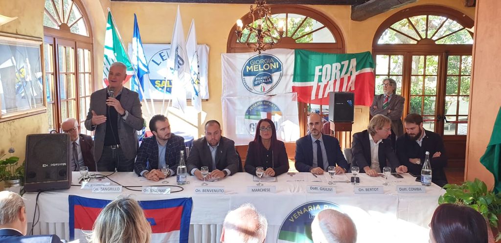 Tante le istituzioni presenti al tavolo dei relatori: l'Onorevole Riccardo Molinari (Segretario Lega Piemonte - Capogruppo alla Camera Lega), l'Onorevole Paolo Zangrillo (Coordinatore FI Piemonte), Maurizio Marrone (Consigliere Regionale FDI), l'Onorevole Alessandro Benvenuto (Segretario provinciale Lega), il Senatore Andrea Fluttero (Coordinatore provinciale FI) e l'Onorevole Fabrizio Bertot (Coordiantore provinciale FDI).
