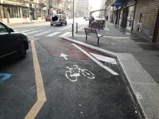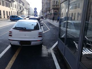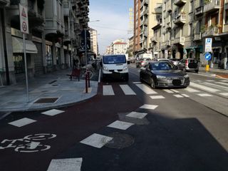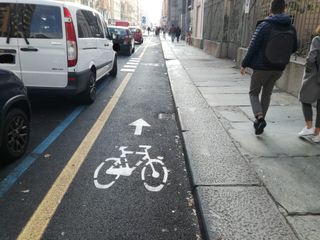 Non mancano tuttavia gli indisciplinati: soprattutto avvicinandosi da piazza Carducci verso Porta Nuova, un paio di auto parcheggiate a scavalco della pista le abbiamo incrociate. Per non parlare di alcuni furgoni in consegna, ma lasciati proprio a scavalco della pista.
