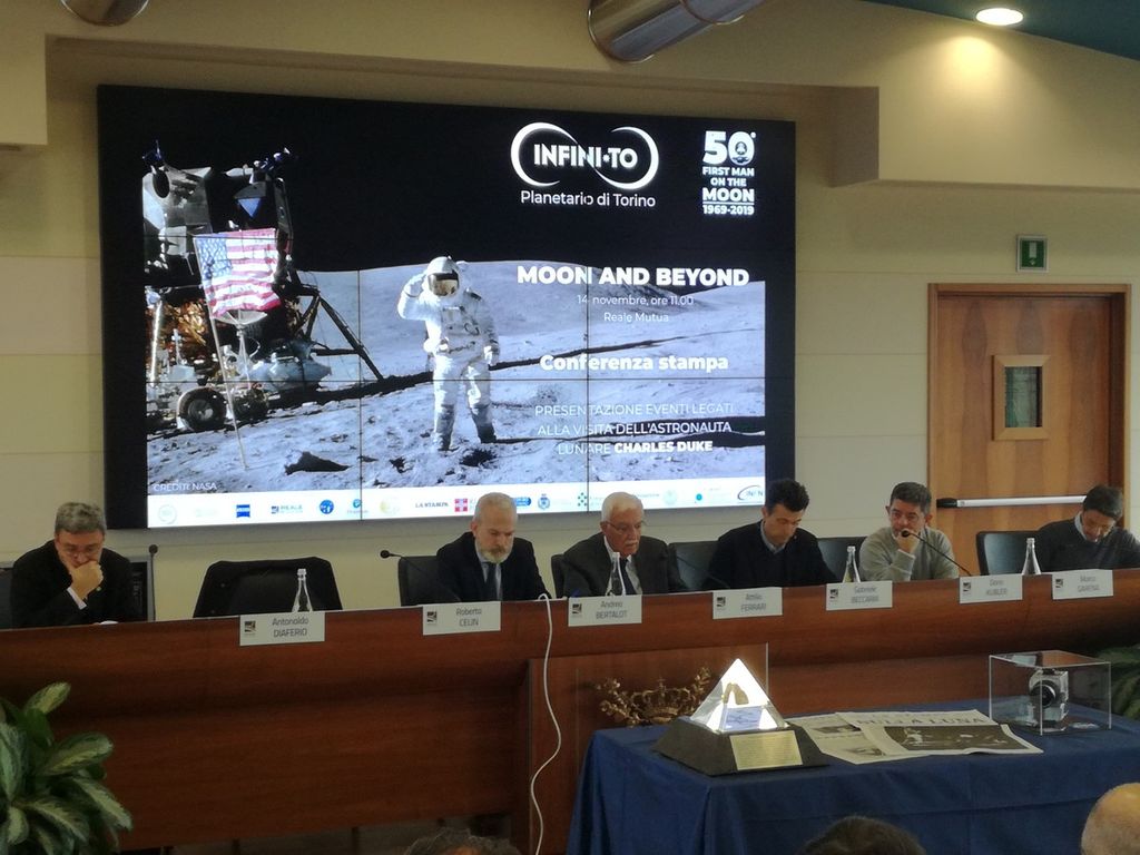 Il calendario prevede un primo incontro con Duke, che fu pilota del modulo lunare nella missione Apollo 16, nel 1972, alla Cavallerizza Reale nel pomeriggio del 17 novembre. Alle 16.30 dialogherà nell'ambito di una conferenza pubblica con il presidente di Infini.To, Attilio Ferrari, oltre che con Bertalot e con la responsabile marketing di Zeiss, Elena Rubino. In quell'occasione sarà possibile osservare da vicino un frammento di pietra lunare, portato sulla Terra dall'Apollo 15, oltre a una replica della macchina fotografica utilizzata durante la missione Apollo 11.