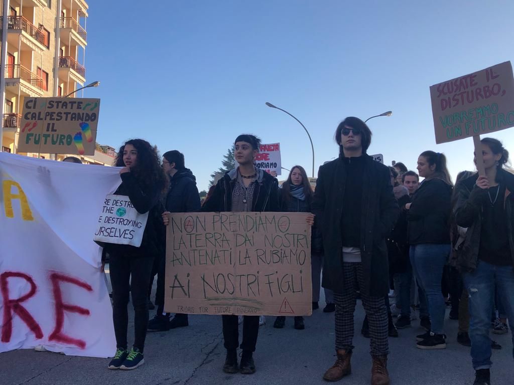 Il corteo partito dal centro studi arriva sin davanti al Municipio. La manifestazione intende fare pressione in vista della prossima conferenza dell’Onu Cop25 a Madrid e protestare contro il Black Friday
