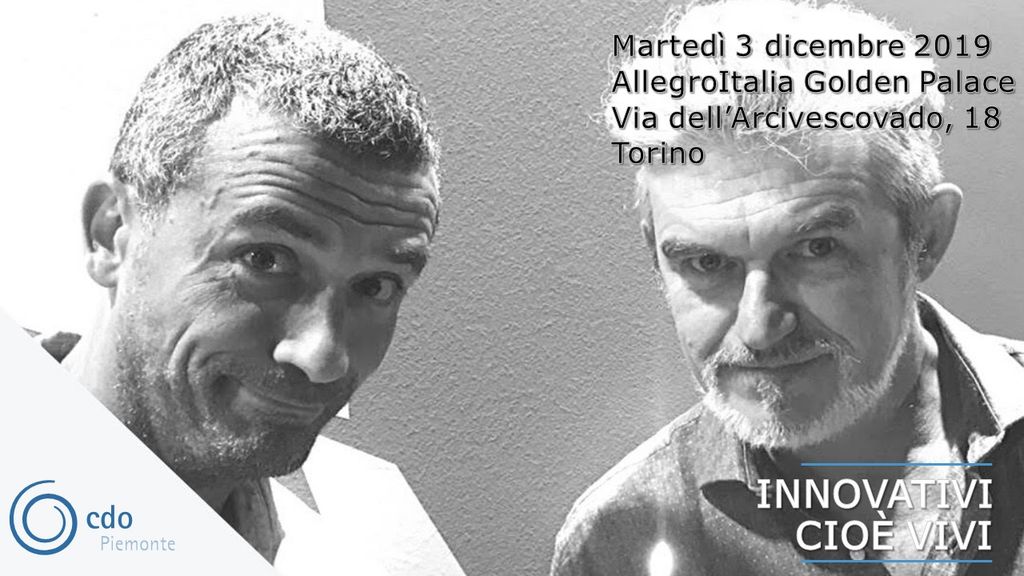 Cdo Piemonte invita imprenditori, manager e professionisti martedì 3 dicembre 2019 alle ore 18,30 presso Allegroitalia Golden Palace in via Arcivescovado 18, presso la “Sala Diamante” a Torino per una serata sull’innovazione che coinvolgerà tutti: sarà l’occasione, infatti, per condividere risultati ed esperienze del progetto Un PONTE per la Trasformazione Digitale (presentato lo scorso 20 marzo a Torino Incontra), per conoscere opportunità e iniziative offerte alle aziende nel prossimo triennio da Unioncamere e dai PID, per farsi provocare tutti dallo spettacolo Innovativi cioè Vivi e terminare insieme con convivialità e networking.