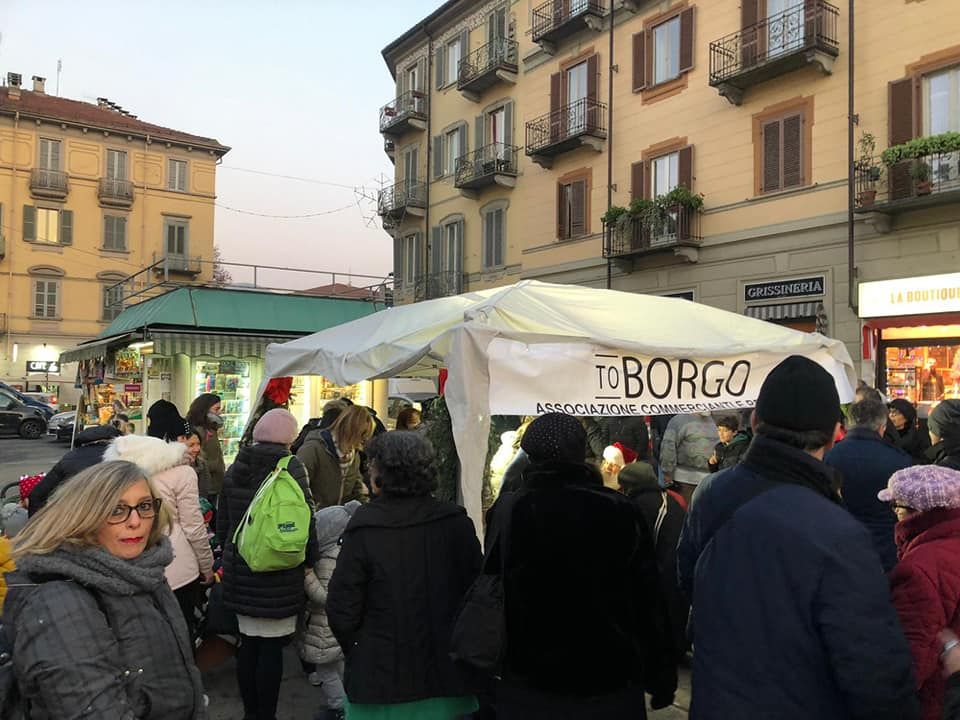 A qualche centinaio di metri di distanza e qualche ora più tardi, in Piazza Borromini, sono state invece accese le luci di Natale: l'evento, organizzato dall'associazione To Borgo insieme alla Circoscrizione 7, ha visto la partecipazione del presidente Luca Deri e di alcuni consiglieri, oltre a un Babbo Natale e alle maschere di Gianduja e Giacometta; in conclusione sono stati distribuiti dolci e caramelle offerti dai commercianti di zona.
