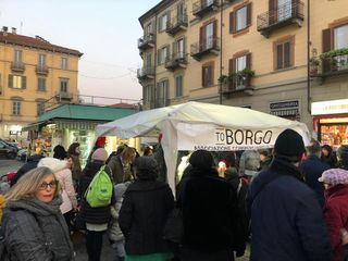 A qualche centinaio di metri di distanza e qualche ora più tardi, in Piazza Borromini, sono state invece accese le luci di Natale: l'evento, organizzato dall'associazione To Borgo insieme alla Circoscrizione 7, ha visto la partecipazione del presidente Luca Deri e di alcuni consiglieri, oltre a un Babbo Natale e alle maschere di Gianduja e Giacometta; in conclusione sono stati distribuiti dolci e caramelle offerti dai commercianti di zona.