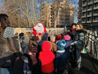 Alle 9.30 l'associazione ARQA, nell'ambito delle iniziative per #AddobbaTO, ha coinvolto le bambine e i bambini dell'asilo nido “Il faro” e della scuola dell'infanzia di Via Ancona per abbellire il ponte pedonale tra i lungo Dora Firenze e Savona (ribattezzato per l'occasione “Il ponte incantato”) con alcune decorazioni natalizie create apposta per l'occasione.