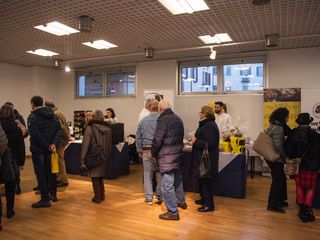 La manifestazione si è tenuta nel foyer e nella Sala Caramba del Teatro Sociale (foto di Marco Rostagno).