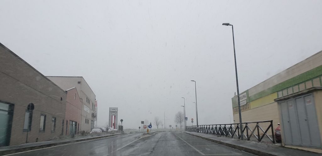 Ha iniziato pochi minuti fa e si è già imbiancata. La prima nevicata dell'anno è arrivata anche a Chivasso ed in tutto il chivassese. Torrazza, Verolengo, Rondissone sono già imbiancate e gli spazzaneve sono già al lavoro.
