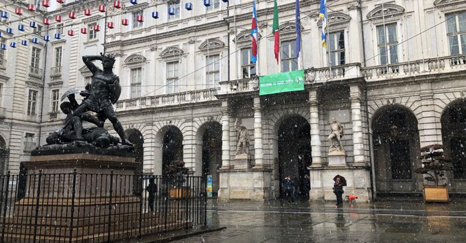 Il Comune di Torino dà ufficialmente il benvenuto a Greta Thunberg. Questa mattina al balcone di Palazzo Civico è stato affisso lo striscione, a sfondo verde, "Welcome to Turin, Greta".