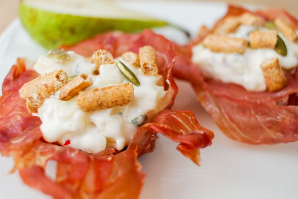 Un secondo veloce e super proteico che sfrutta la polpa aromatica e leggermente acidula della pera Conference in abbinamento al crudo di Parma in versione “cestino”! Tratta dal ricettario inSUPERabile di Fata Zucchina con la pera dell’Emilia Romagna IGP nell’ambito del PSR 2014-2020 della Regione Emilia Romagna (mantenere carattere più piccolo)