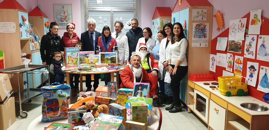 E' stata poi la volta dell'ospedale di Rivoli. Ad attendere i giocattoli, sono stati Franco Garofalo, direttore della Pediatria, Marco Rolando, direttore del Dipartimento Materno Infantile, Elena Serra, coordinatrice del dipartimento Materno Infantile, Luisella Audisio, dirigente dell'Asl To3, Barbara Troia, infermiera coordinatrice sc della Pediatria, Emanuela Lovato, direttore del Presidio e Marika Giacometti, della direzione medica.