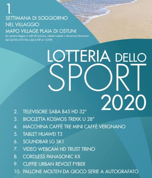 A partire da domenica saranno in vendita anche i biglietti della Lotteria dello Sport 2020, acquistabili presso il Chieri ’76 e altre 12 società sportive.