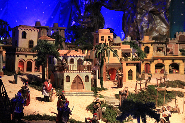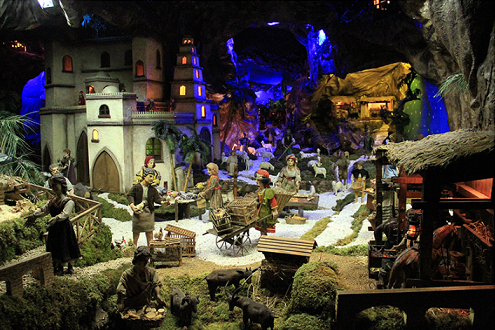 Partendo da una struttura stabile, una decina di volontari lavorano circa 3 mesi per realizzare questo Presepio.