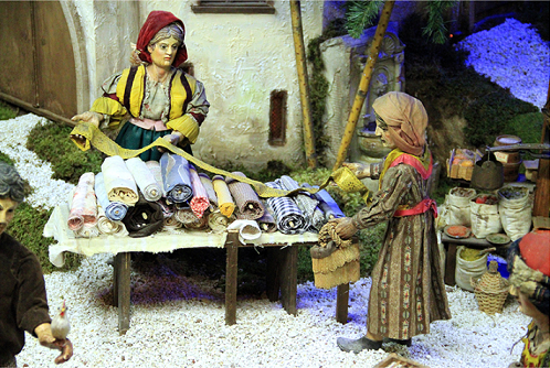 Un secondo gruppo di statue di media grandezza (alte 30 cm circa), risalgono al 180, ed anch’esse sono scolpite in legno ma in modo più grossolano. Hanno però braccia e gambe snodate e si sono prestate con più facilità alla meccanizzazione, il che le rende vive nei loro vari mestieri piemontesi risalenti all’inizio del 1900. Infine, un terzo gruppo di statue sono di origine provenzale e risalgono al 1900: sono realizzate in terracotta e stoffa e vengono usate nel presepio per valorizzare la prospettiva e arricchire l’ambiente.