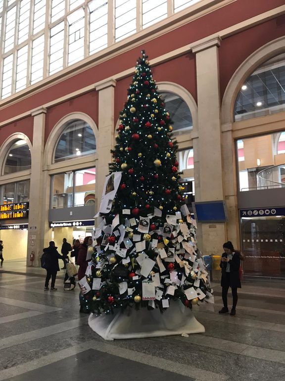 Nella hall della stazione, tra il via vai di chi corre per prendere un treno e dei pendolari che rincasano dopo una lunga giornata di lavoro, sono tanti i curiosi che si fermano a fotografare l’albero, a scrivere o a leggere una letterina. Su quei fogli di carta improvvisati vi sono i sogni dei torinesi, dai più intimi e romantici ai più simpatici: c’è chi chiede un mondo più pulito e rispetto per il clima, chi lancia messaggi d’amore a donne che non sa se rincontrerà mai o chi, con ironia, chiede a Babbo Natale un passaggio in orario del bus Gtt.