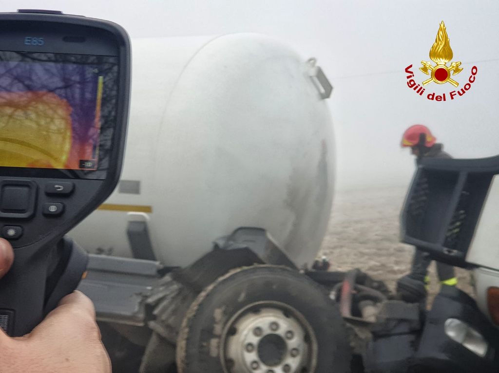 Carignano, incidente per una cisterna carica di gpl: 6.000 litri da travasare e strada chiusa per quasi 10 ore [FOTO]